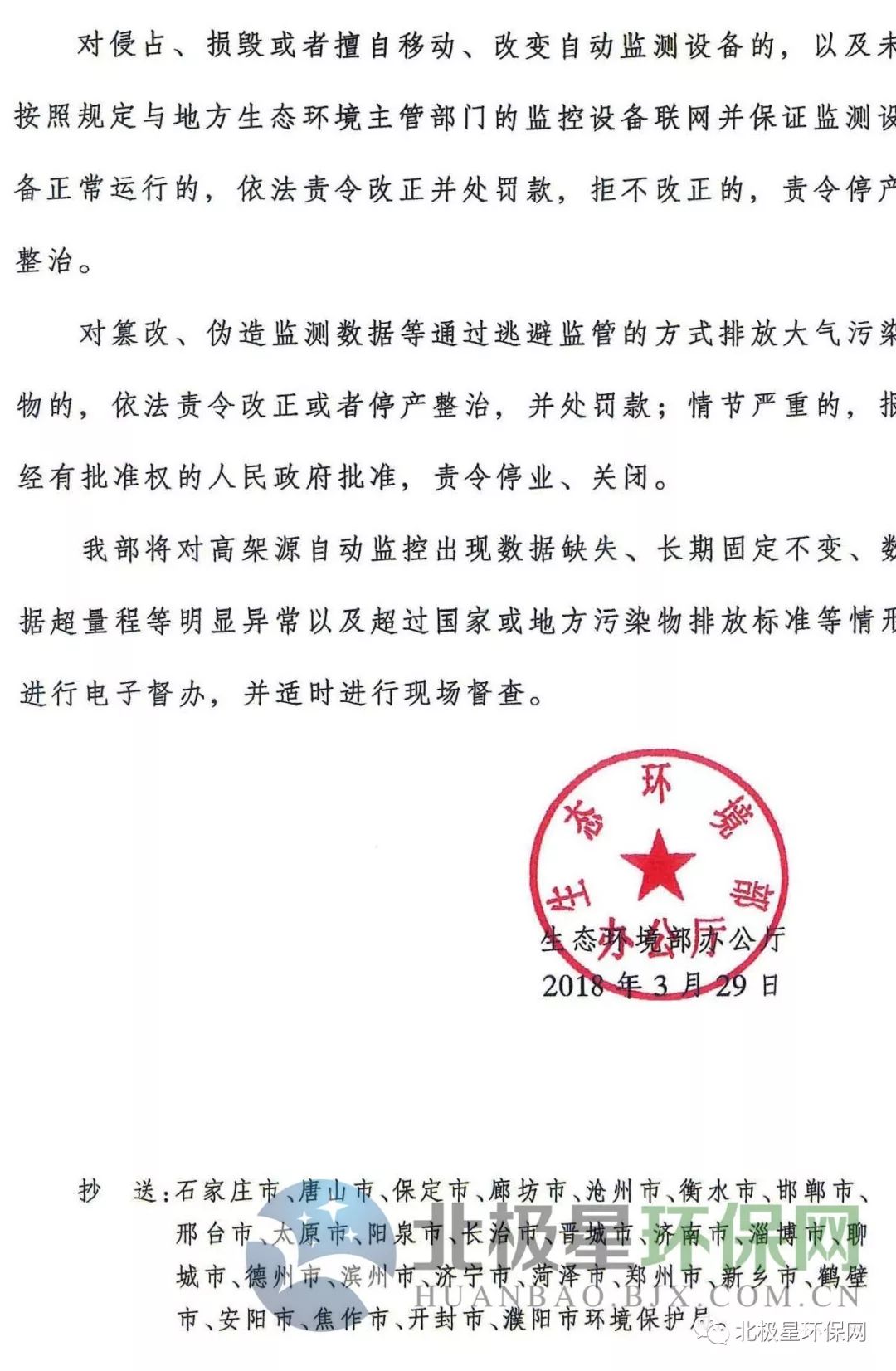北极星环保网获悉,生态环境部印发《关于加强京津冀及周边地区“2+26”城市高架源自动监控管理的通知》。通知称,近期京津冀及周边地区“2+26”城市的高架源自动监控频繁出现数据缺失或长期掉线等问题,对区域大气污染防控和环境监管产生不利影响。