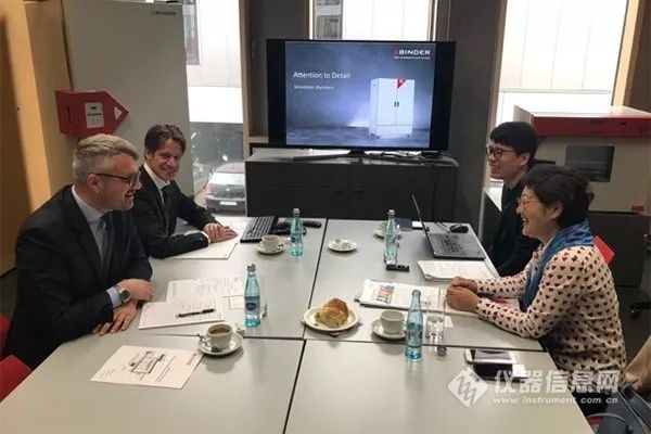 2018年4月16日,趁参加analytica 2018之际,仪器信息网一行走进了位于德国图特林根市的Binder总部,受到了Binder副总裁兼全球销售总监Michael Pfaff、Binder副总裁兼全球市场总监Peter Wimmer的热情接待,参观了生产车间并就公司的发展历程、产品研发和定位以及市场战略规划等方面进行了深入交流与探讨。