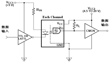 其中,VIN为输入端TTL电平电压,VF为光耦发光二极管的电压。