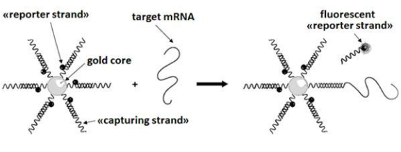 俄罗斯的科学家自主优化了德国默克公司开发的纳米金标RNA探针(SmartFlareTM,Merck),使其能够用来鉴定活细胞中mRNA表达水平。