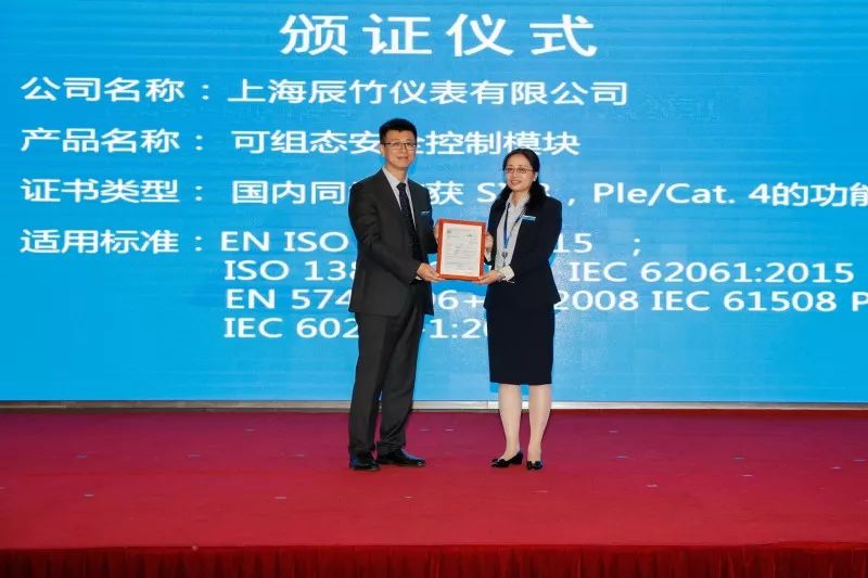 作为本届功能安全峰会的重要环节,TÜV莱茵在现场为辰竹的新产品颁发了大中华区首张满足SIL3,PLe/Cat.4的可编程安全控制模块证书,同时也为其内部可靠性实验室颁发了ISO/IEC 17025实验室认可证书。至此,辰竹不仅成为国内同行中产品最早获得TÜV莱茵认证的企业,同时也成为获证产品型号最多的企业。