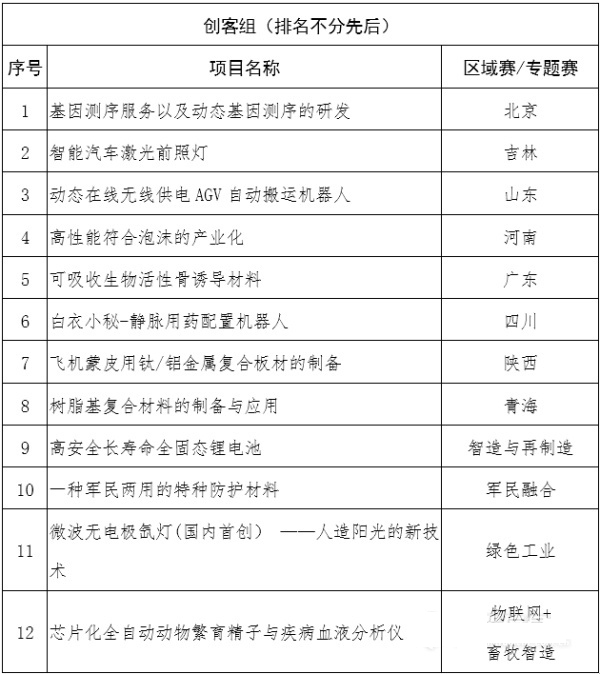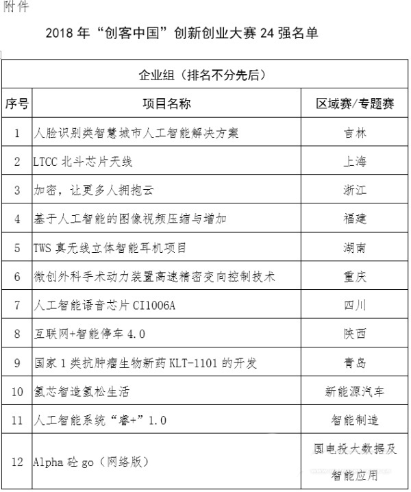 “创客中国”总决赛24强全名单: