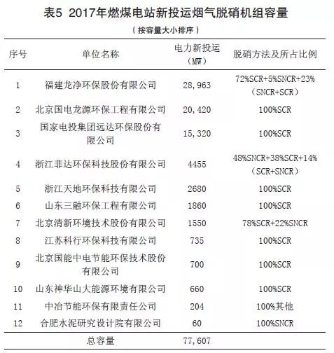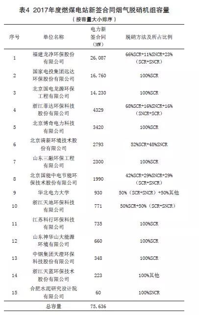 (4)2017年燃煤电站新投运的烟气脱硝工程机组容量
