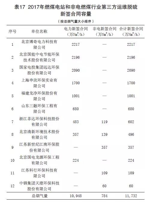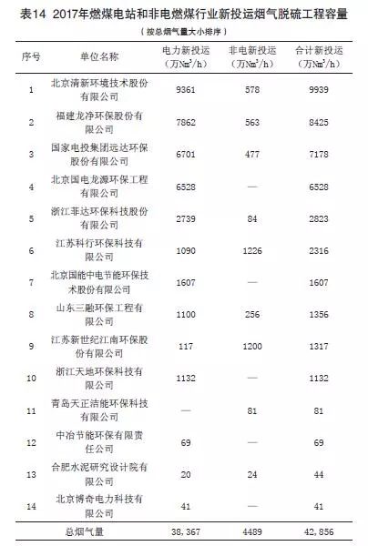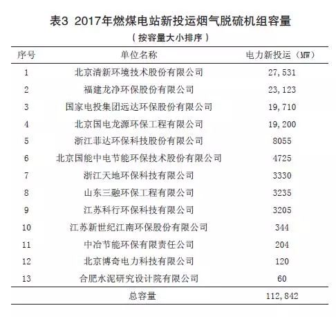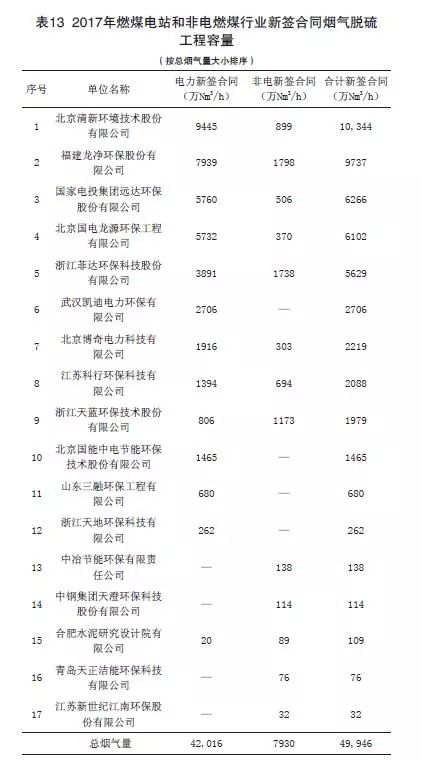 (2)2017年度燃煤烟气全行业新投运脱硫工程容量