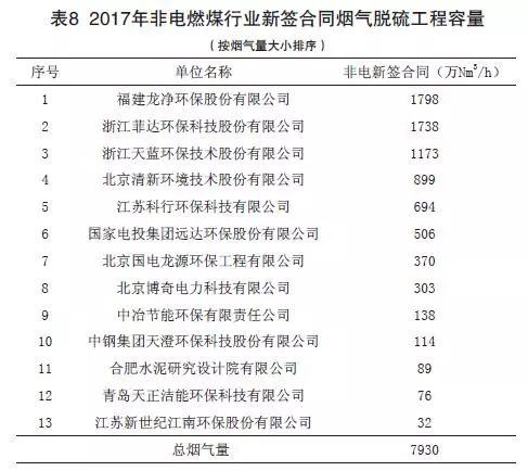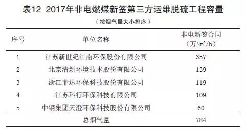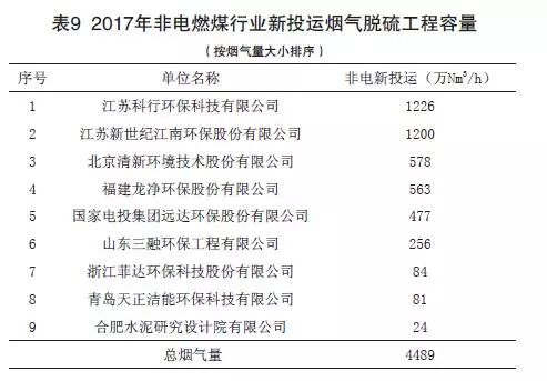 (2)2017年非电燃煤行业新投运脱硫工程容量
