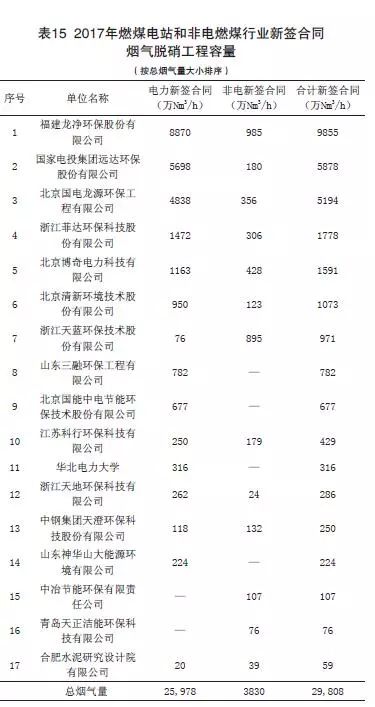(3)2017年燃煤烟气全行业新签脱硝工程合同容量
