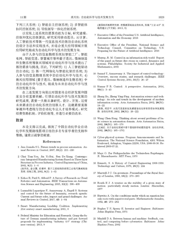 本论文得以完成, 得到了中国自动化学会自动化学科发展路线图项目组的多名专家学者的支持和帮助, 谨致以诚挚的谢意.