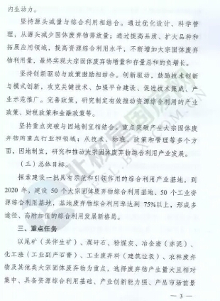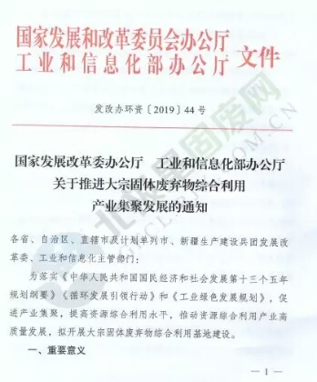 导 读:为落实《中华人民共和国经济和社会发展第十三个五年规划纲要》《循环发展引领计划》和《工业绿色发展规划》,促进产业集聚,提高资源综合利用水平,推动资源综合利用产业高质量发展,近日,国家发展改革委与工业和信息化部联合印发了《关于推进大宗固体废弃物综合利用产业集聚发展的通知》。《通知》提出到2020年,我国将建设50个大宗固体废弃物综合利用基地、50个工业资源综合利用基地,基地废弃物综合利用率达到75%以上,形成多途径、高附加值的综合利用发展新格局。
