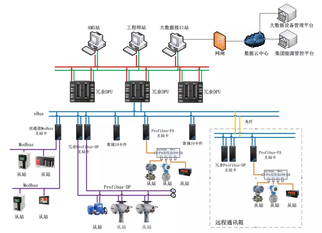 网络架构层次清晰:现场总线设备网络、ebus IO网络、eNet双冗余控制网络: