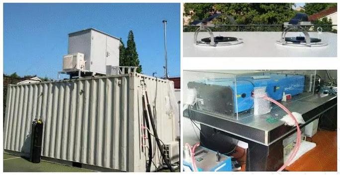 颗粒物在大气中的垂直分布不均,且高空的垂直迁移会影响近地面的污染浓度。因此,垂直结构的观测对于全面认识大气污染必不可少。激光雷达系统具有测量精度高,时空分辨能力强,测量范围大,监测实时、连续等优势。由于遥感的目标不一样,导致要测量的辐射信号也不一样,这样就产生了各种不同种类的激光雷达。米散射激光雷达是应用最广、也是发展历史最悠久的一种激光雷达类型,其原理是利用气溶胶的后向米散射回波信号来探测气溶胶光学特性如后向散射系数/消光系数的时空分布。这种激光雷达系统已被广泛应用到对流层和平流层气溶胶光学特性时空分布及烟雾和工业尘埃的测量中,为研究颗粒物的扩散规律提供了有效的实验手段。米散射雷达常采用Nd:YAG的二倍频激光输出的532nm波段,因为背景光的影响,白天探测对流层中低层气溶胶的高度范围从近地面到15km高空,夜间的探测范围可以扩展至平流层30km高空。米散激光雷达发展早,技术成熟,相对于后来发展的拉曼雷达、差分吸收雷达,系统简单,现在已逐渐向小型化和产业化发展,在气候、环保、国防等领域具有广泛用途,见图5。