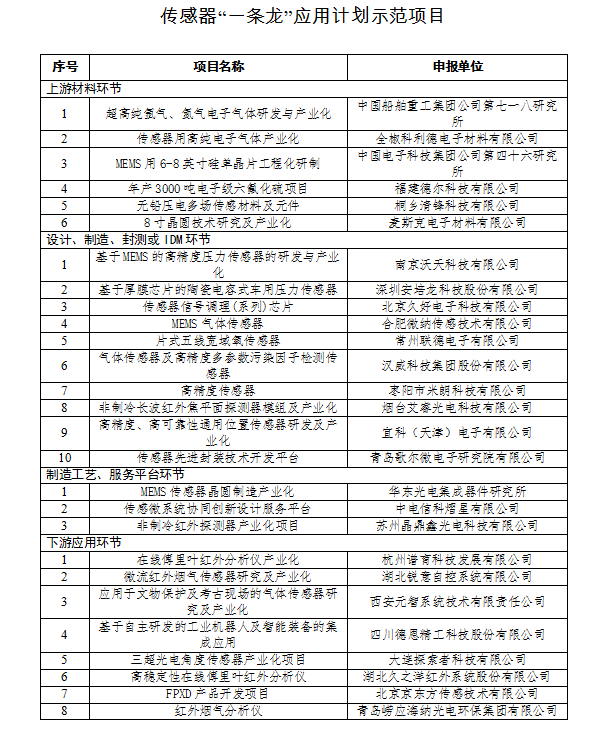 12月12日,工信部规划司发布了《2019年工业强基重点产品、工艺“一条龙”应用计划示范企业和示范项目公示》,传感器是其中的重点之一,参与的上市公司包括汉威科技、歌尔股份、久之洋等。