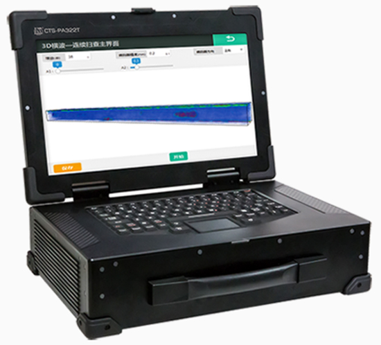 相控阵全聚焦实时3D超声成像系统CTS-PA322T,该系统是我司自主研发的一款新型64通道全并行的相控阵全聚焦(TFM)实时超声成像检测系统。系统实时采集材料内部的全矩阵(FMC)数据,并利用基于信号处理芯片的高速硬件成像技术,实现对金属以及非金属材料的高精度实时相控阵2D/3D全聚焦(TFM)成像检测。首创工业相控阵RF 射频元数据平台,可直接对完整的原始数据进行计算机处理。