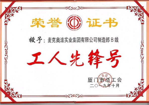 祝贺制造部B线荣获“厦门市工人先锋号”!