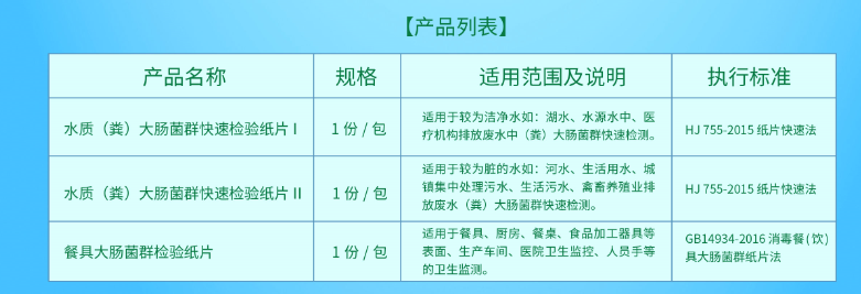 水质(粪)大肠菌群检验纸片可广泛应用于各级环境监测站、污水处理厂、医疗机构、畜牧养殖业、集中供水企业、饮用水生产企业等多个行业。