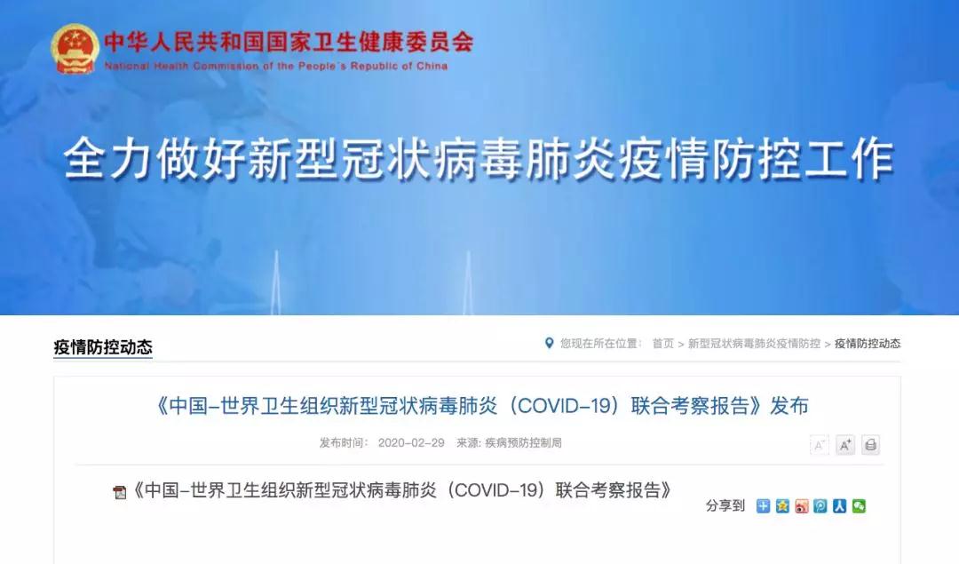 29日,国家卫健委发布《中国-世界卫生组织新型冠状病毒肺炎(COVID-19)联合考察报告》,公布了对新冠肺炎的最新研究结果与应对措施。报告指出,中国采取了历史上最勇敢、最灵活、最积极的防控措施。
