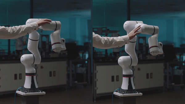 虽然传统工业机器人也可以通过末端加力传感器的方式实现力觉控制,但受限于面向位置的控制体系结构,力觉闭环经过的环节多,反应迟钝,节拍很慢,很难比拟人手。柔性机器人与传统工业机器人不同的软硬件体系结构:每个关节都配置力传感器,并且底层控制体系结构由原来的位置控制,转变为力和位置融合控制,使机器人兼具高精度位置控制和高动态力控制。