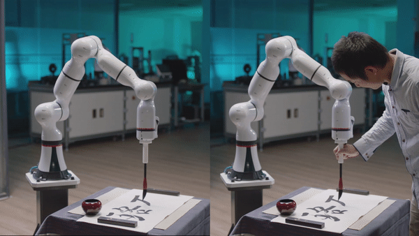 ▲高动态力控,电缆接口插拔依靠高动态力控技术,可以全面升级目前协作机器人的特性:比如通过灵敏力感知,实现更轻便的拖动示教,甚至可以直接拖动机器人写毛笔字,使机器人更易用。通过高灵敏度外力碰撞检测,使人机协作更安全。