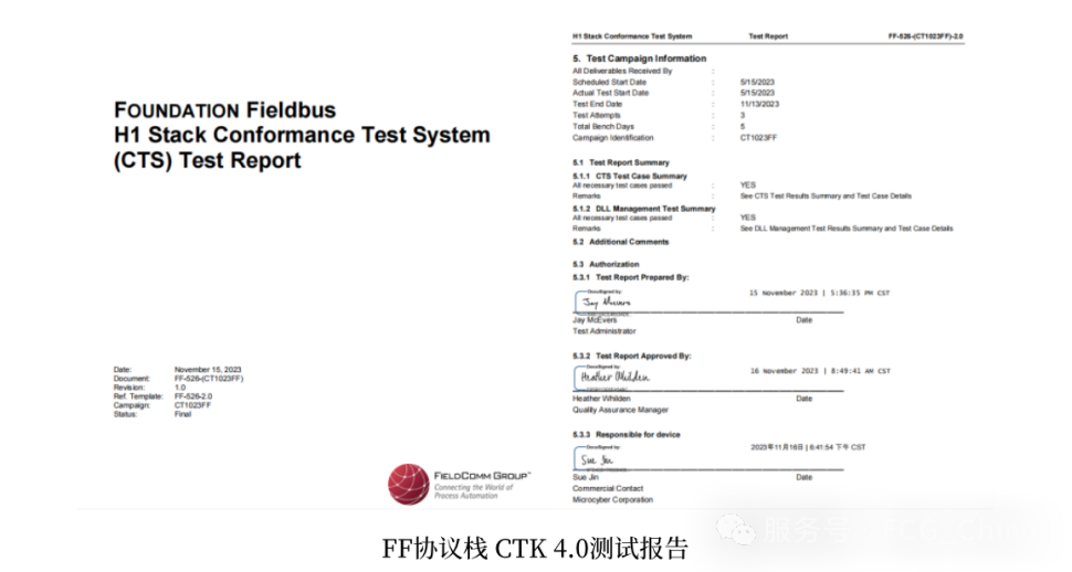 ·中科博微自主开发的FF协议栈是国内唯一一个通过FCG CTK 4.0 认证测试的协议栈