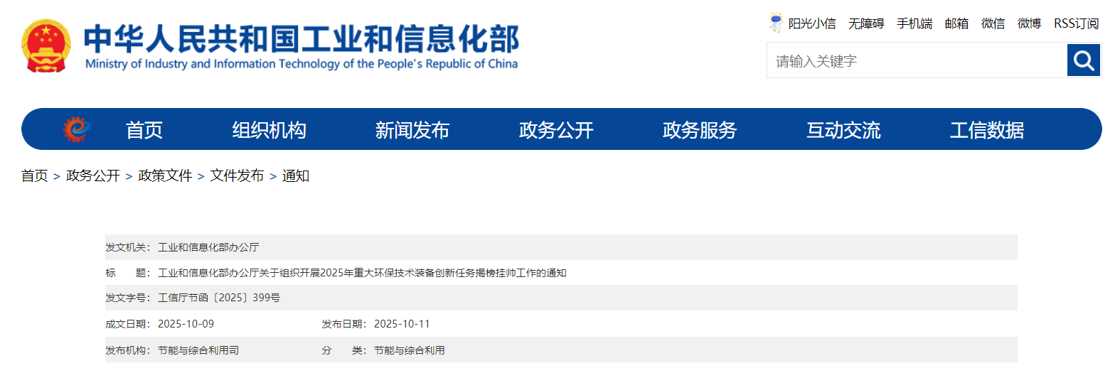 近日,工信部正式发布《关于组织开展2025年重大环保技术装备创新任务揭榜挂帅工作的通知》,面向大气污染防治、水污染防治、固体废物处理、环境监测专用仪器仪表领域实际需求,聚焦高盐废水处理回用、干式烟气净化、持久性有机污染物识别监测等难点问题,共设立28项任务榜单。