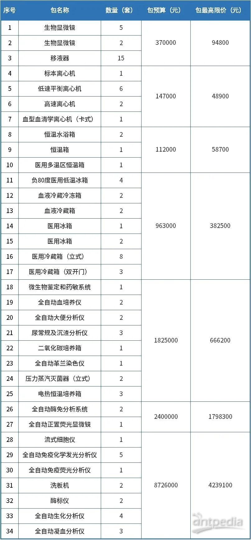 近日,郑州市中心医院国家创伤区域医疗中心公布多批次招标公告,其中集中招标采购一批实验室分析检测设备,主要包括生物显微镜、全自动正置荧光显微镜、流式细胞仪、酶标仪、洗板机、离心机、移液器等,这些设备预算总额为1454.3万元。详情如下: