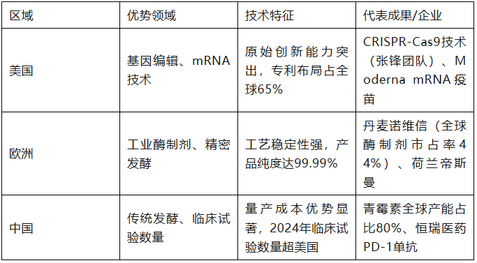 美国依托强大的基础研究能力,主导合成生物学底层技术创新,CRISPR基因编辑专利家族覆盖72%以上应用场景;欧洲凭借百年发酵工业积累,在酶制剂定向进化、高密度发酵工艺上构筑壁垒,诺维信的蛋白酶比活(催化效率)是中国同类产品的2.3倍。中国虽在发酵规模和临床试验数量上领先,但缺乏自主知识产权的核心菌种和高端转化技术。