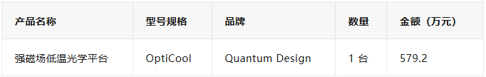 2、强磁场低温光学平台2025年11月26日强磁场低温光学平台采购项目通过验收,合同金额:579.2万元。