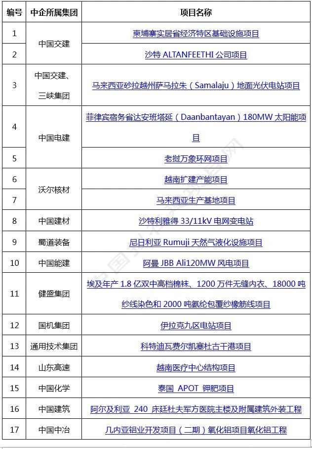12月15日-19日新收录中企签约/中标/公告海外项目汇总如下: