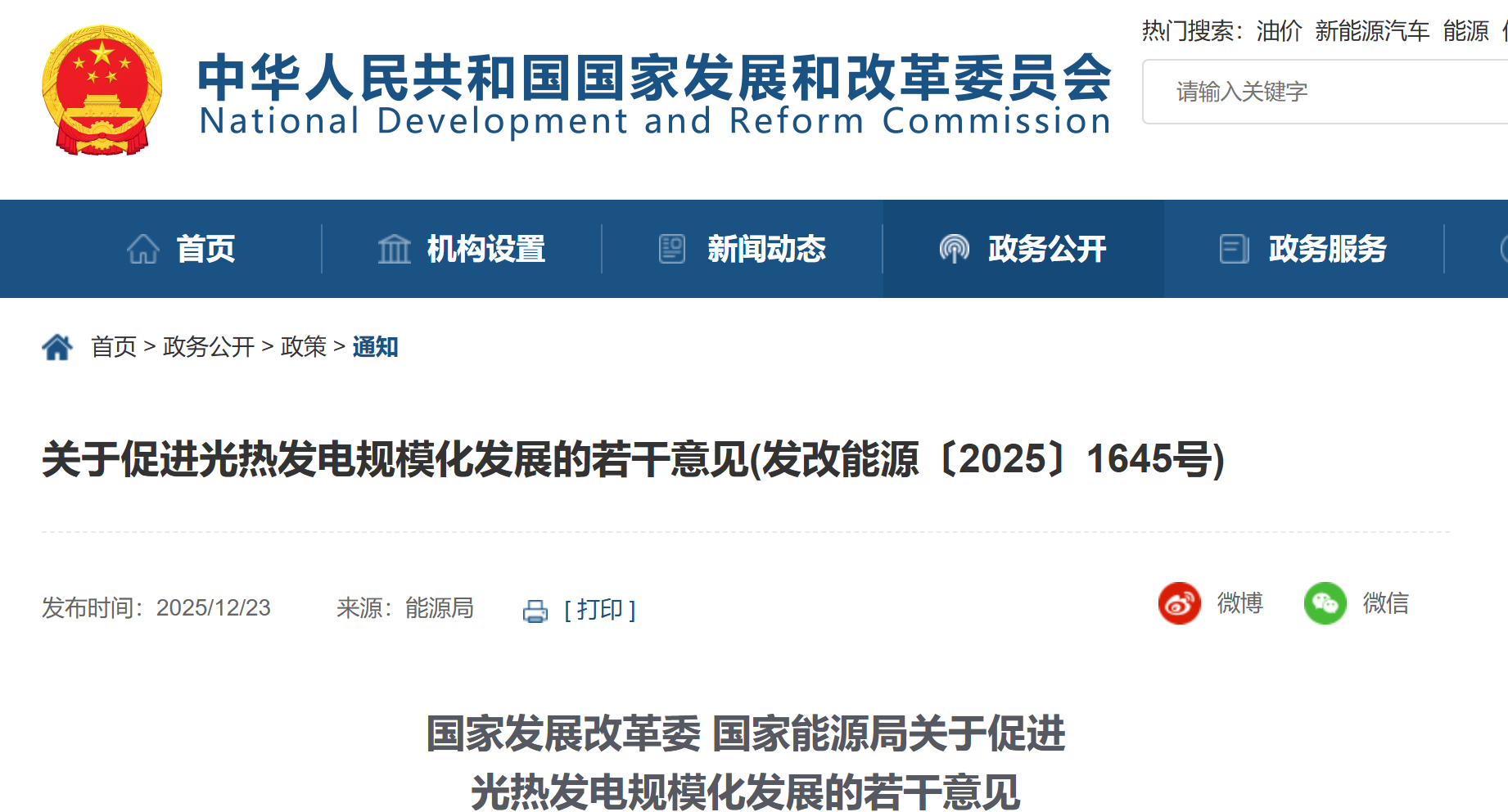 近日,国家发展改革委、国家能源局印发《关于促进光热发电规模化发展的若干意见》(以下简称《意见》,政策原文参考附件)。国家能源局有关负责同志就《意见》接受采访,回答了记者提问。