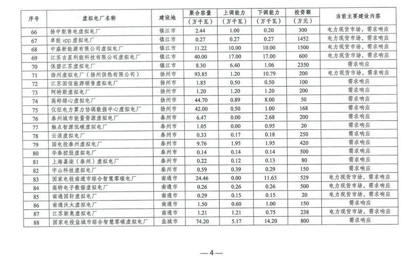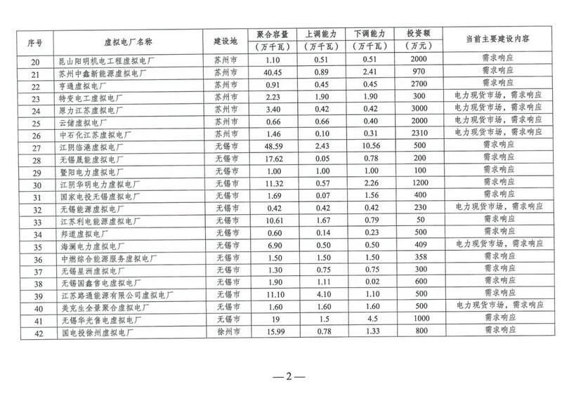 江苏省首批建100个虚拟电厂项目,总聚合容量达16.98GW,上调能力2.75GW,下调能力3.17GW,涉及总投资额12.73亿元;主要建设内容为电力现货市场及需求响应。
