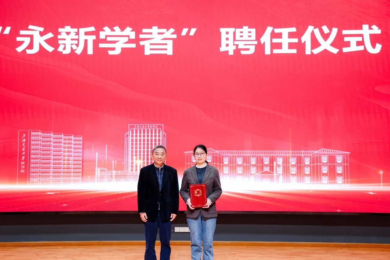 庆典仪式上,永新光学董事长曹其东、副总经理毛昊阳、崔志英受邀出席,共同见证这一重要时刻。曹其东先生亲自为上海交大基础医学公共技术平台正高级工程师孔妤博士颁发“永新学者”聘书,彰显企业支持青年科研人才、深化校企协同育人的坚定承诺。