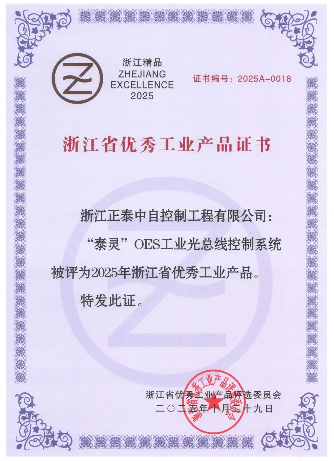 近日,浙江省优秀工业产品评选委员会公布2025年浙江省优秀工业产品名单,浙江正泰中自控制工程有限公司"泰灵"OES工业光总线控制系统凭借优异的产品力从参加评审的产品中脱颖而出,成功入选2025 年浙江省优秀工业产品名单,成为浙江优质工业的代言产品。