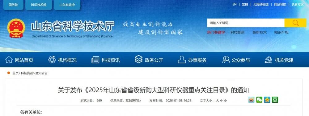 关于发布《2025年山东省省级新购大型科研仪器重点关注目录》的通知