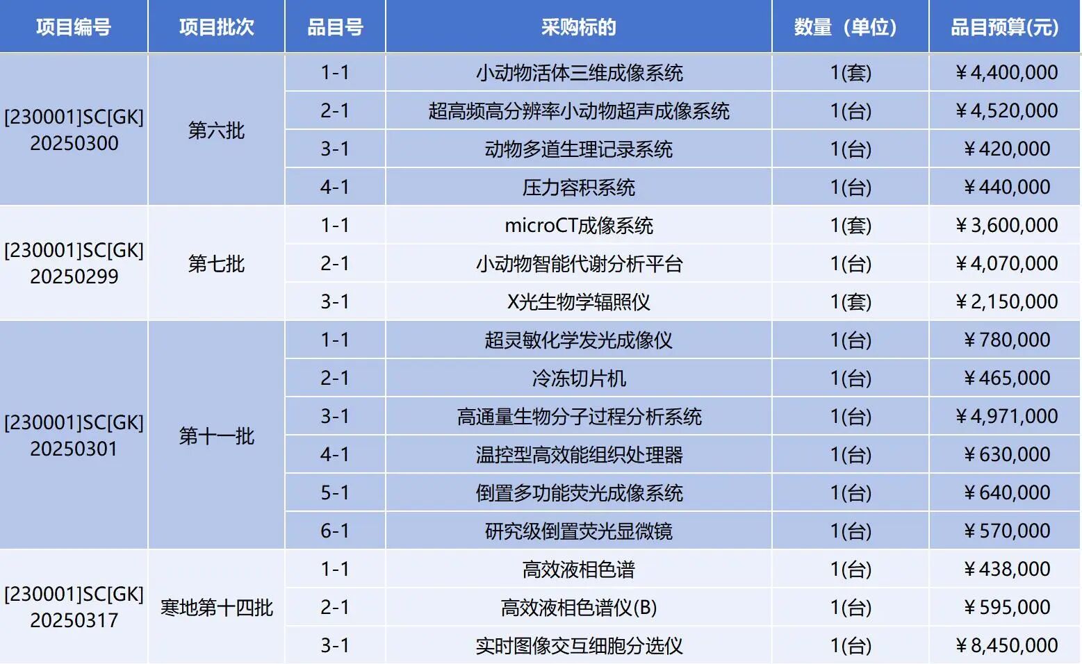 近日,哈尔滨医科大学寒地心血管病全国重点实验室正式启动大规模科研仪器设备更新项目,本月已密集发布多个批次的招标公告。