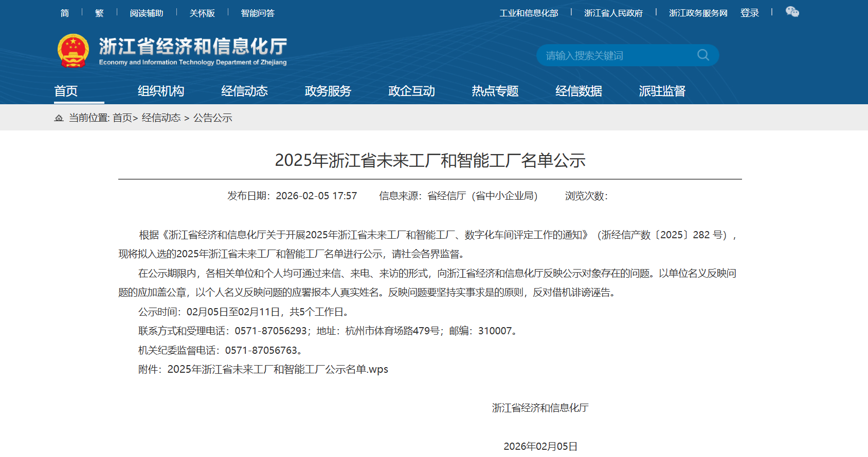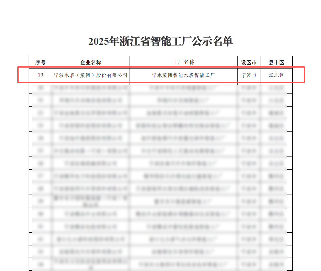 近日,浙江省经济和信息化厅正式公示了2025年度浙江省智能工厂项目名单,宁波水表(集团)股份有限公司(以下简称“宁水集团”)凭借“宁水集团智能水表智能工厂”项目成功入选。此次获评不仅是权威部门对宁水集团智能制造实力的高度认可,更是宁水集团以系统化、前瞻性的数字化转型蓝图为引领,扎实推进智能化建设的标志性成果展现。