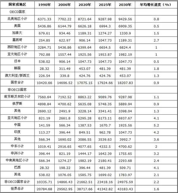 资料来源:美国能源署(InternationalEnergyOutlook2008)单位:亿立方米