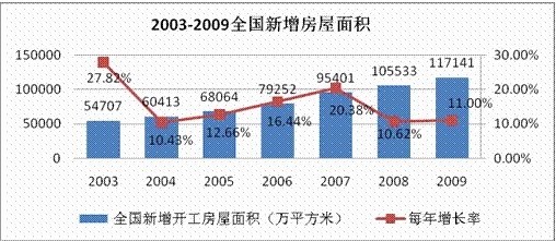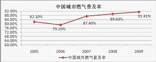 从中华人民共和国国家统计局网站公布的年鉴中了解到,全国新增房屋面积从2003年的54,707万平方米到2009年的1,171,412万平方米,每年都保持增长趋势。此间6年中,中国新增住房面积年复合增长率达13.53%。同时,随着城市人口的增加和消费结构的升级,人们越来越注重环保和生活品质,城市管道燃气尤其是管道天然气需求越来越大,而未来的城市小康住宅示范居住小区将会大面积的使用新型智能化的燃气计量表,相应地燃气表行业特别是智能燃气表行业将迎来大发展时期。随着我国城市燃气普及率的不断提升未来城镇化进程势必会带动燃气表行业的发展。