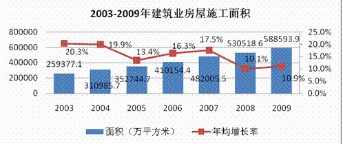 燃气表业务与房产市场发展密切相关。2003年-2009年建筑房屋施工面积由259,377万平方米增加到588,593万平方米,年均增长14.6%。