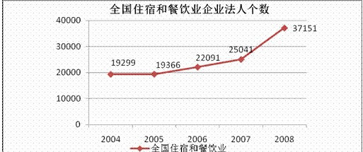 从国家统计局网站上了解到2008年我国从事住宿和餐饮的企业法人有37151个,全国餐饮业营业额已达到4824亿元,每年的复合增长率达到20%。