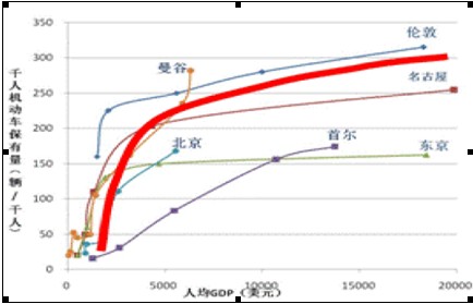 截止到2009年底,我国人均汽车保有量仅为47.8辆/千人,相当于美国1917年、日本1964年、韩国1988年的水平,在考虑人均GDP的情况下,我国汽车保有量仍处于世界较低水平。即使中国未来发展速度减缓,在较长时间里达不到美日韩的水平,只达到世界平均水平,比如达到2007年全球144辆/千人的水平,目前的产销量也将翻一番,汽车市场潜在容量巨大。