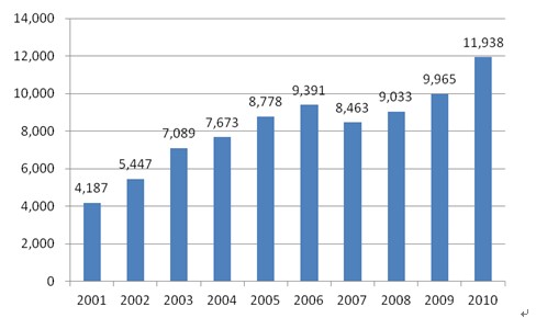 中国是家电生产大国。巨大家电市场,为传感器产品在消费电子领域的大量应用提供了广阔的需求空间。2010年,我国消费电子领域传感器市场规模达到83亿元,同比增长29.7%。